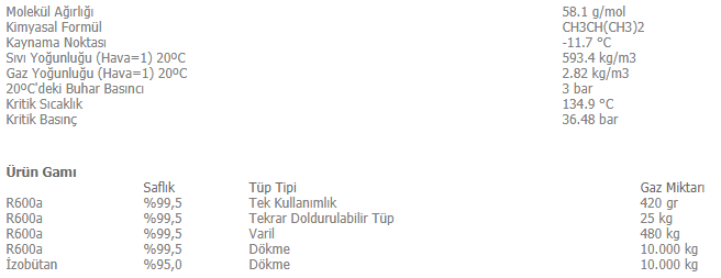 R600a – Havadan ağır, yanıcı ve yüksek konsantrasyonlarda boğucudur.